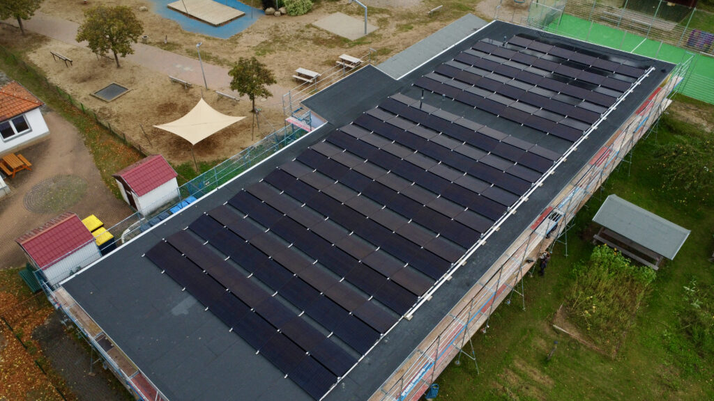 Die 2020 in Partnerschaft mit der Gemeinde Steinhöfel realisierte Anlage ermöglicht eine zeitgleiche Stromerzeugung und -nutzung. Durch den hohen Strombedarf im laufenden Betrieb von Kita, Schule und Hort wird ein hoher Eigenverbrauch erreicht. Die Gemeinde spart rund 1.000 € Stromkosten pro Jahr.